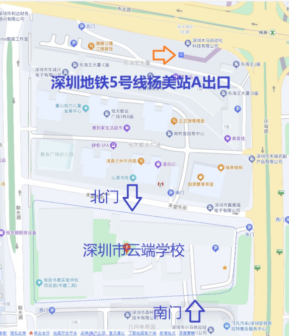 笔试地点在深圳市云端学校(深圳市龙岗区坂田街道环城南路与布龙路交叉口西南侧),考生均从学校南门进入考场,考试完毕从学校北门离开。考场将实行随机分配,具体安排详见准考证。